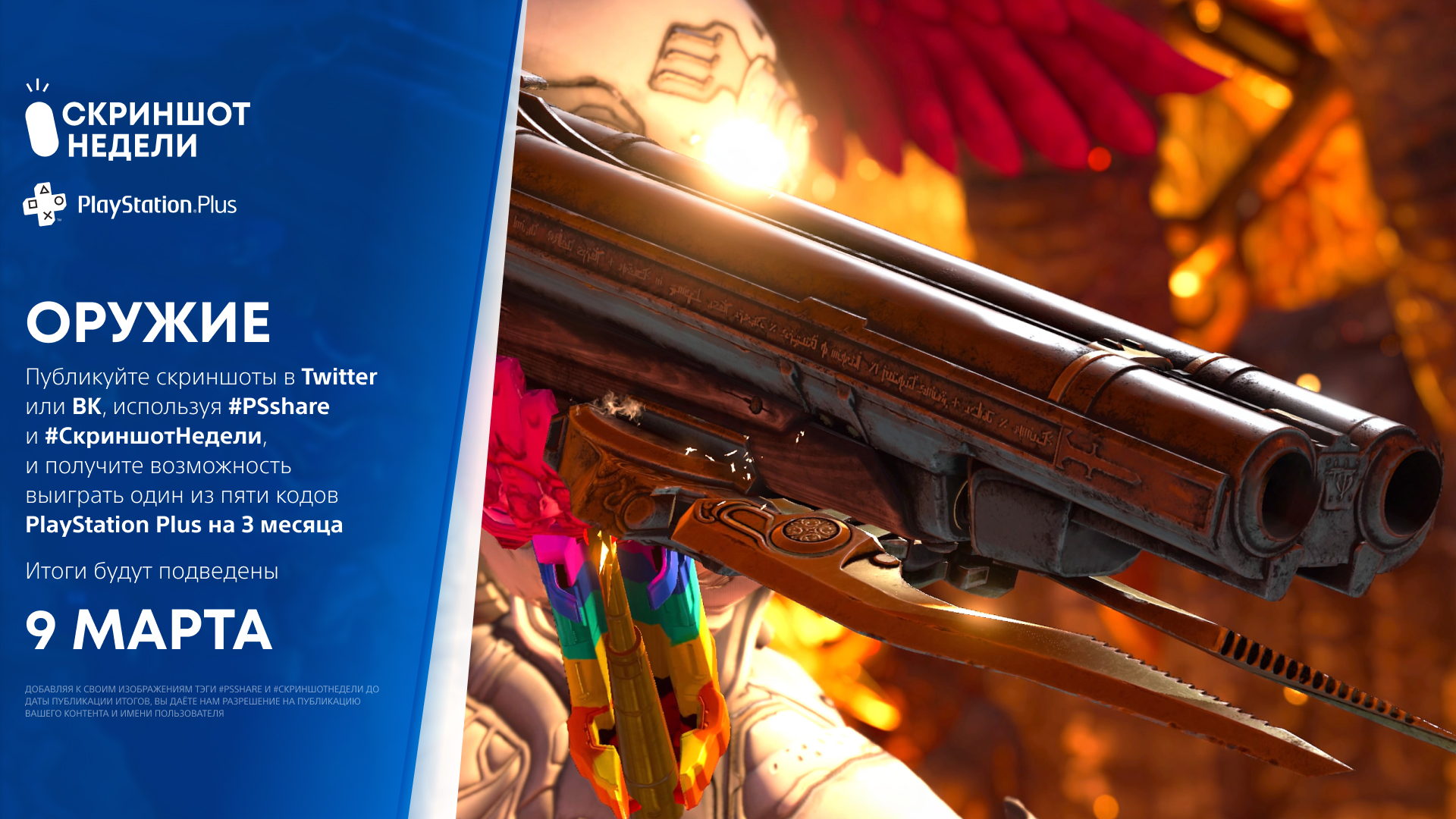 Внимательно следите за нашими страницами в социальных сетях ВКонтакте и Twitter, публикуйте ваши скриншоты на заданные темы с хэштегами #СкриншотНедели и #PSshare и получите возможность выиграть одну из 15 подписок PlayStation Plus на три месяца! Уже через неделю – 9 марта – мы опубликуем лучшие по мнению жюри конкурса работы пяти авторов и вручим им призы! Ознакомиться с полными правилами конкурса можно здесь.