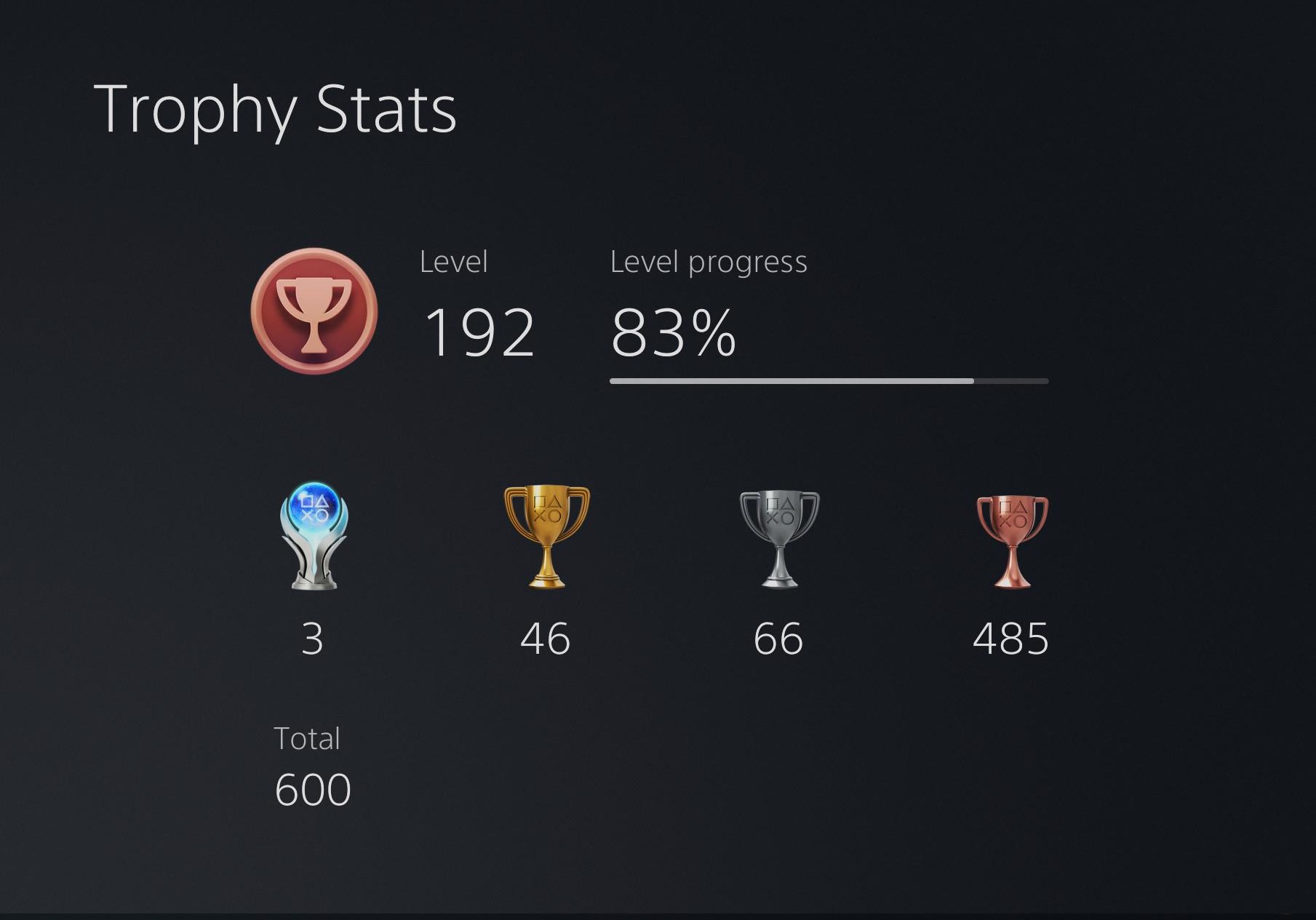 Изображение обрезано, чтобы показать новый экран статистики трофеев.